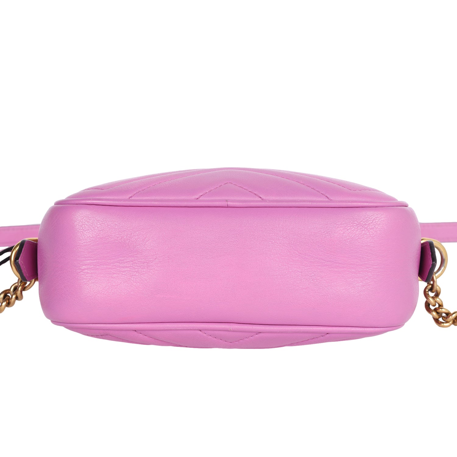 • Pink matelassé chevron leather with GG on the back