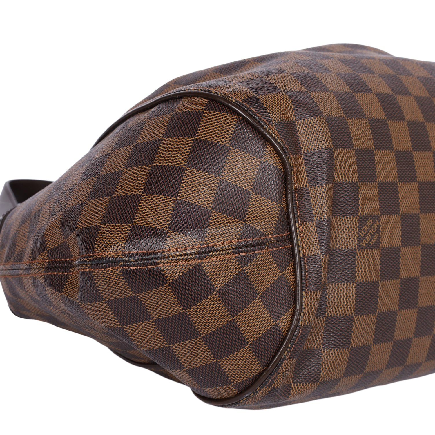 Replica Sunglasses Louis Vuitton brown Damier Ebene Sistina GM Shoulder Bag. Features Louis Vuitton brown Damier coated canvas with leather shoulder straps and trim with polished brass hardware. This bag has a front buckle closure, large orange interior with dual side pockets and zipper middle pocket.