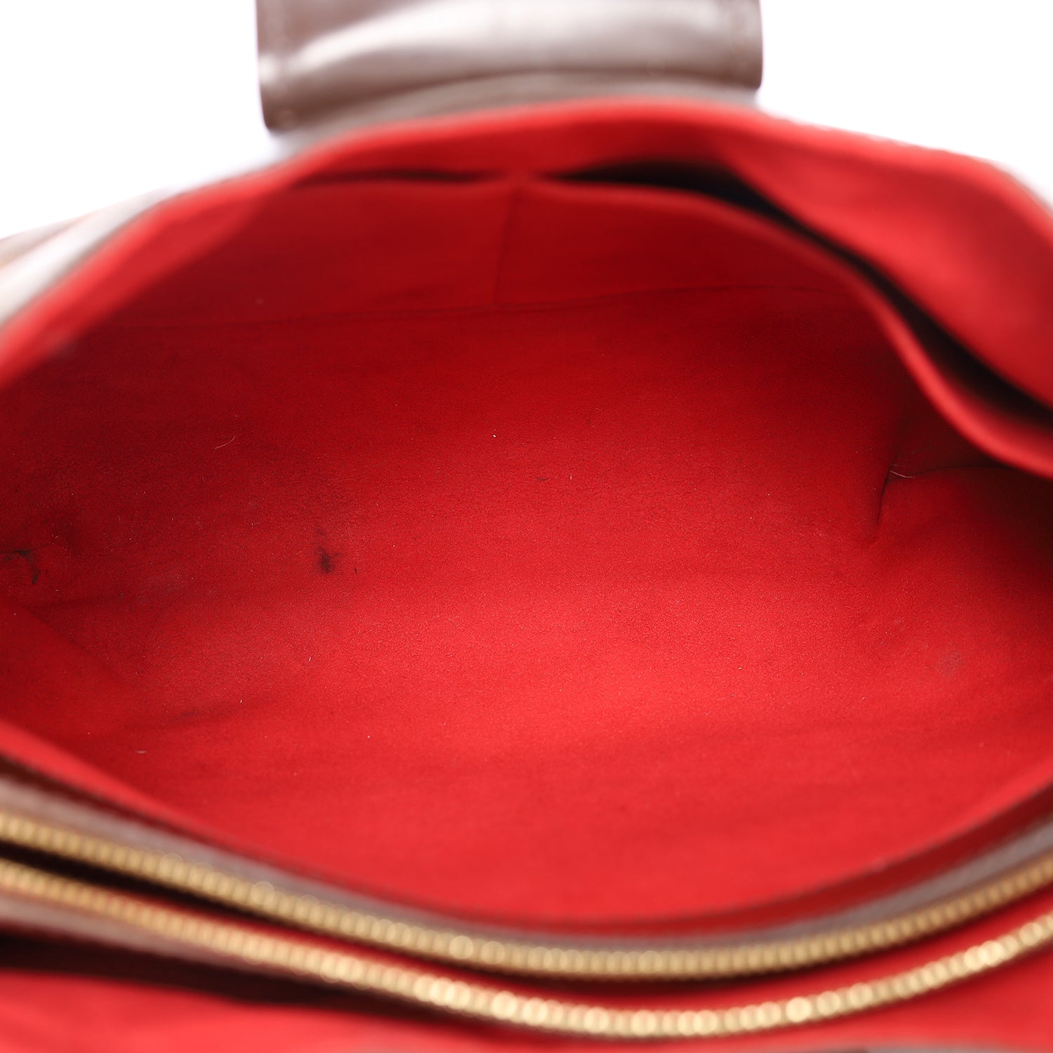 Normal leather aging with some scuff and stain marks, hardware has hairline scratches, the interior has some signs of use and stains, all hardware works properly, straps are strong at the base, wrinkle at the base.