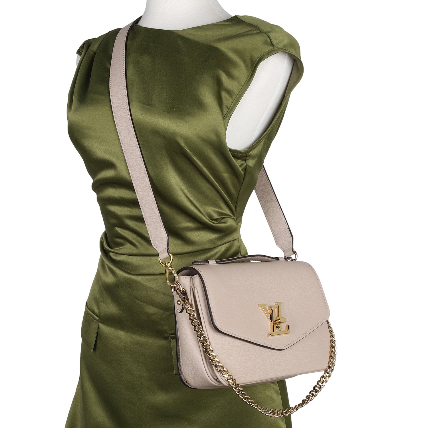 Replica Sunglasses Louis Vuitton Grained Calfskin Lockme Oxford in tan.  This Louis Vuitton handbag is a classic and is loved by all women. Women love this bag for the wonderful shape it has and how easy it is to open and close. Features calfskin leather in beige tan, chain and leather shoulder strap, a polished gold shoulder strap, gold LV turn-lock closure on the front flap, 2 section microfiber interior with rear slip pocket, back of the bag has a zipper pocket.