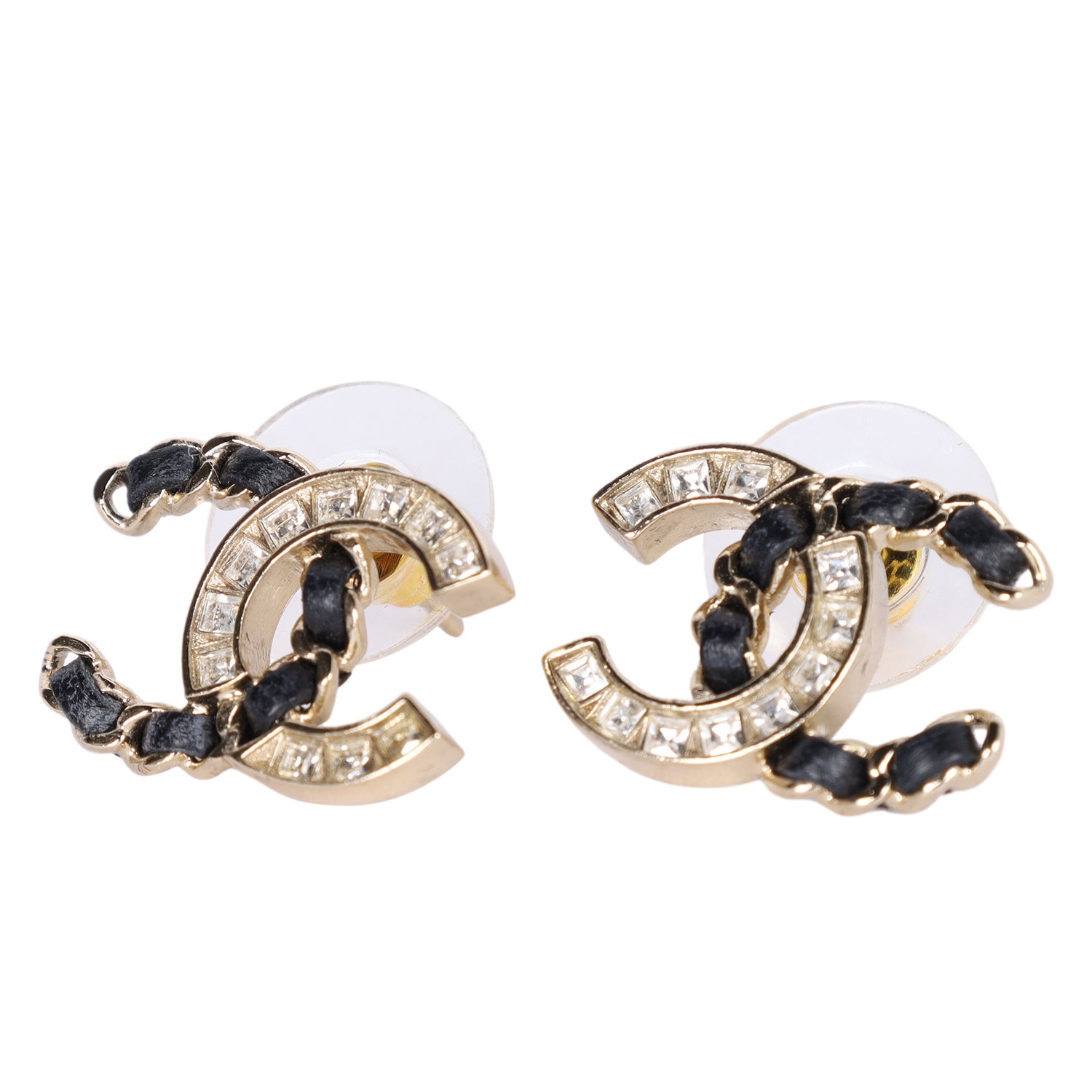 Replica Sunglasses Chanel Leather Interlocking CC Stud Earrings with leather and crystals. Lots of beautiful bling in these earrings. Let these beautiful earrings make your statement!