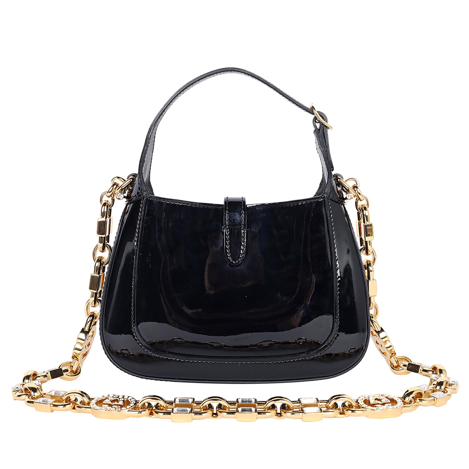 Replica Sunglasses Gucci Jackie 1961 Small Hobo Patent Leather Mini Crystal Hobo in Black.