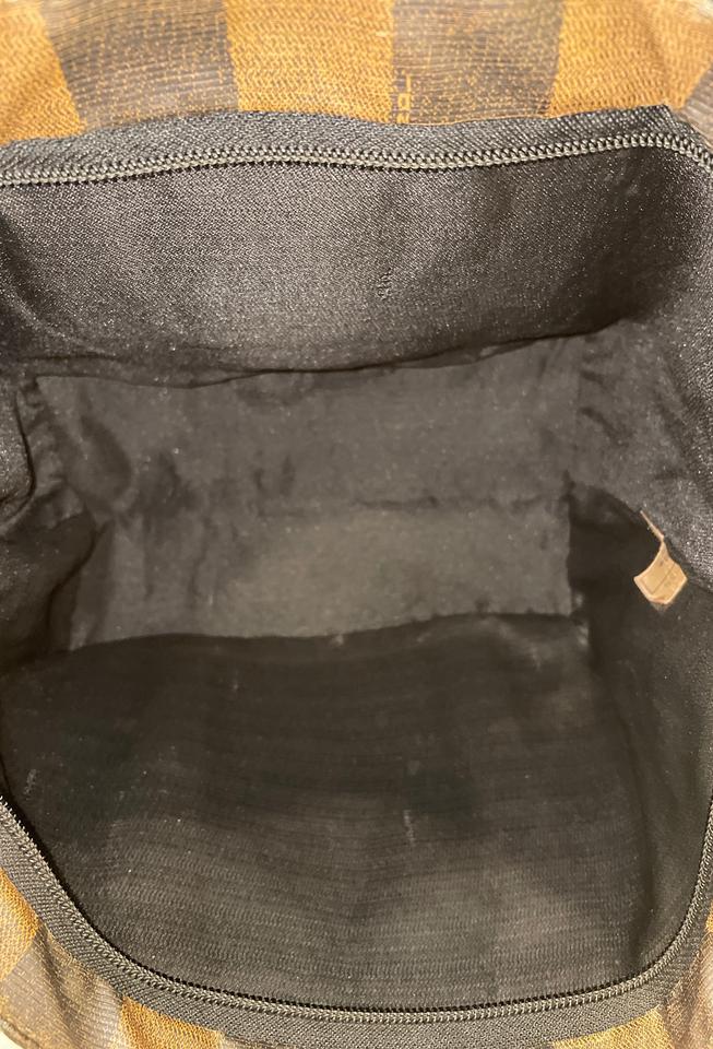 Replica Sunglasses vintage handbag with classic Fendi Pequin stripe. Features pequin canvas with leather accents, Fendi decal front, zipper top closure, large black interior. Perfect size bag for your wallet, phone, cosmetic case, book and more.