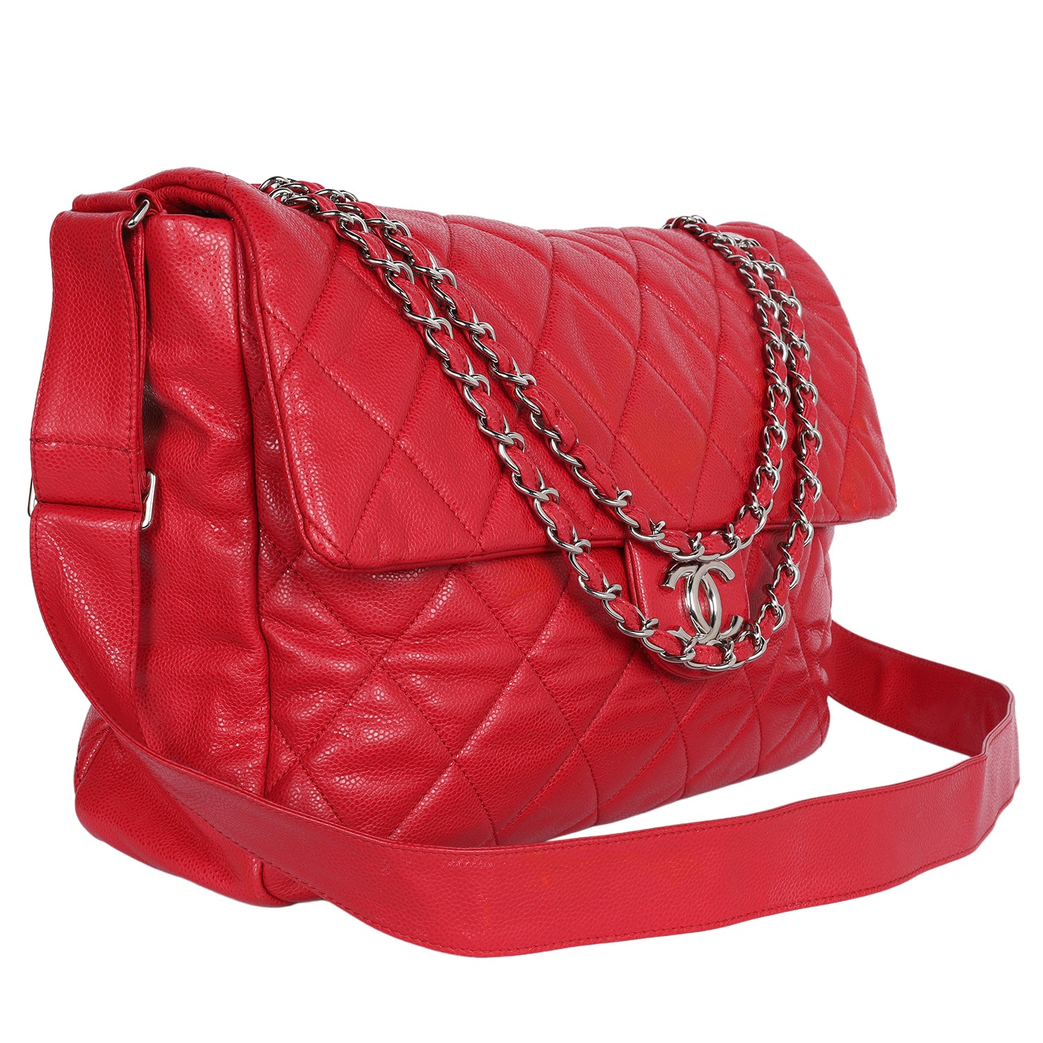 Replica Sunglasses Chanel red quilted caviar XL classic flap messenger bag with silver hardware. A timeless designer handbag featuring the iconic CC front snap closure with dual straps.