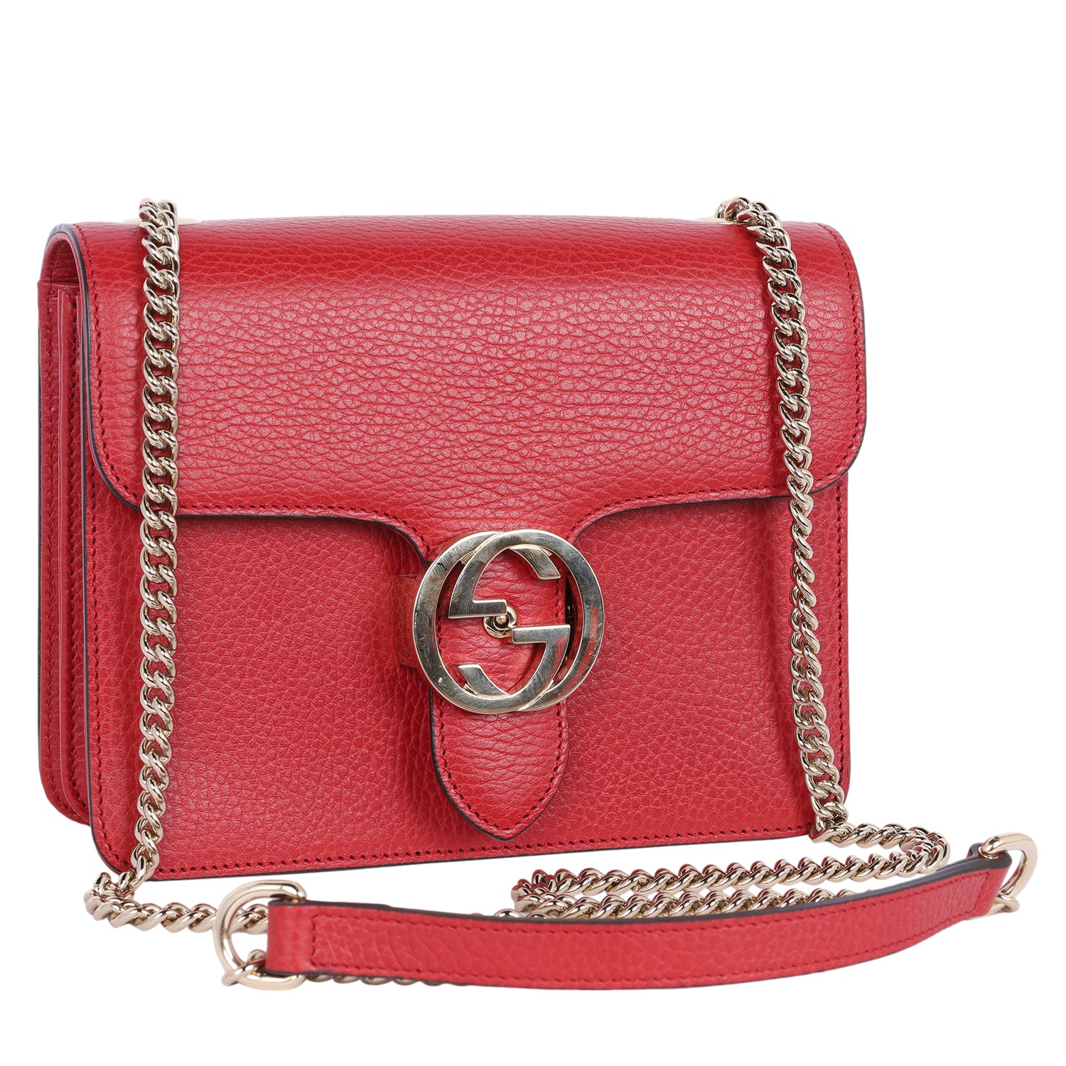 GUCCI Leather Small Interlocking G Shoulder Bag