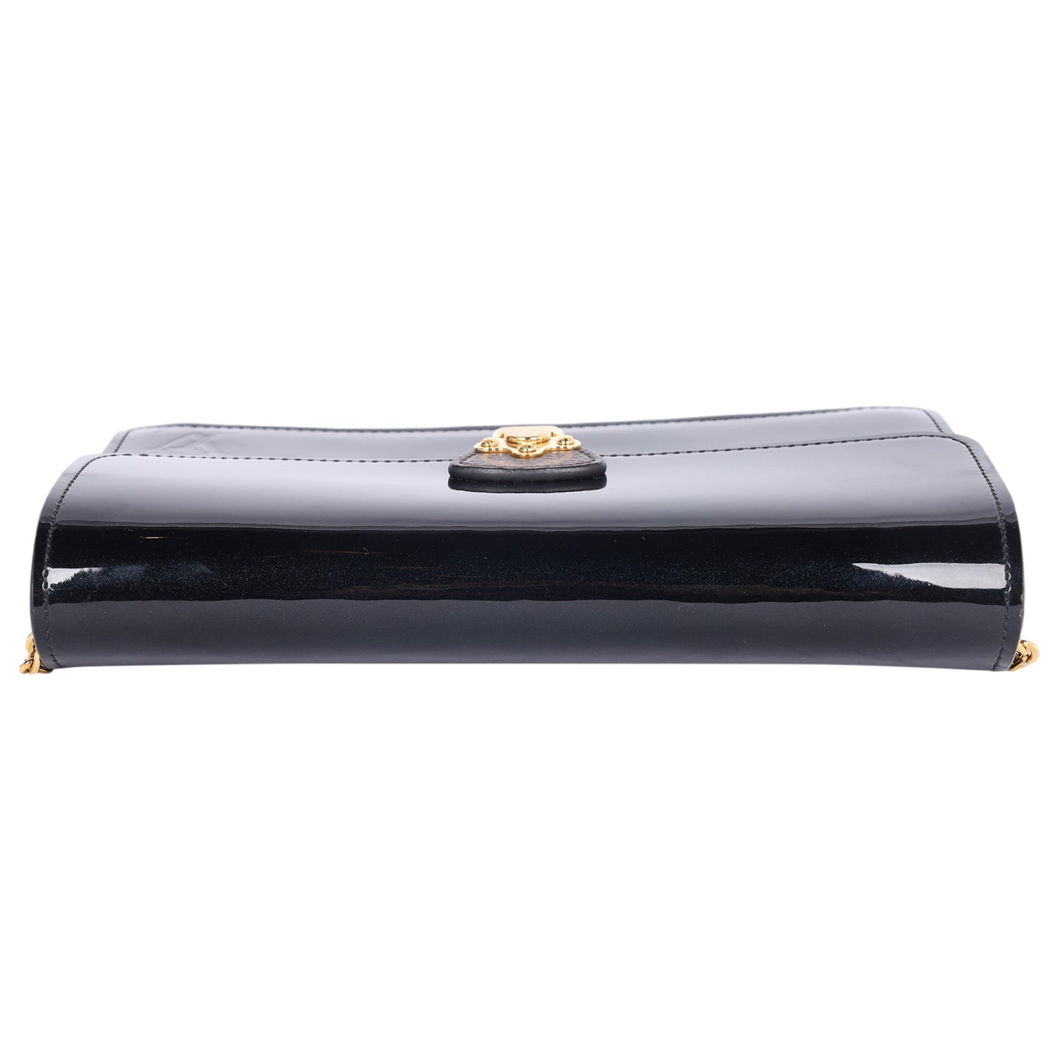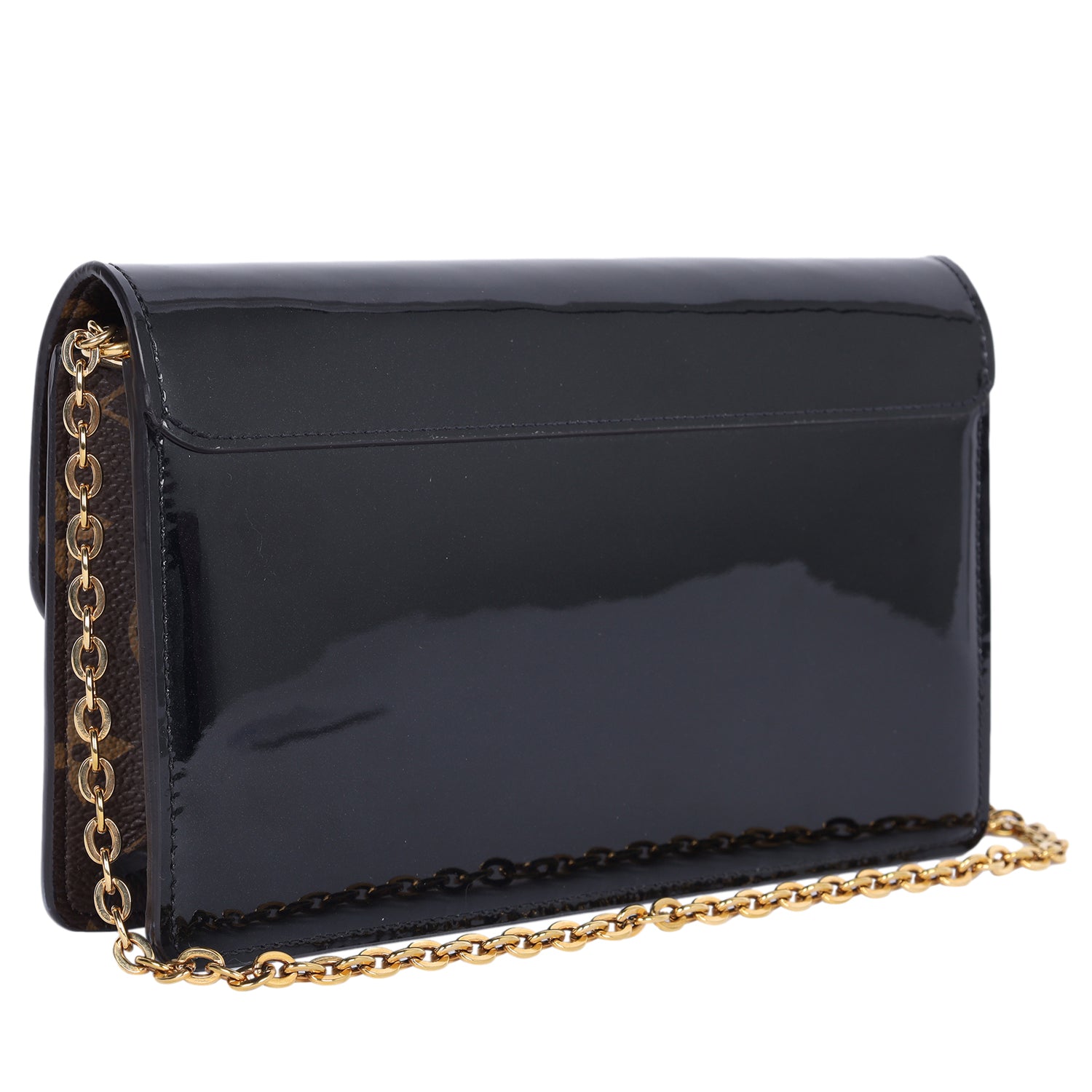 LOUIS VUITTON Patent Calfskin Leather Monogram Cherrywood Chain Wallet Black